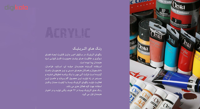 امکان مخلوط شدن با سایر رنگهای اکریلیک وستا و همچنین سایر مکملهای نقاشی اکریلیک