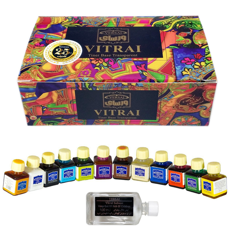 رنگ ویترای یکی از زیباترین رنگها برای نقاشی بر روی شیشه و سطوح کریستال و شفاف است. یکی از کاربردهای مهم این رنگ که از قدیم مرسوم بوده، نقاشی بر روی شیشهها و پنجره ساختمانهای قدیمی و کلیساها است که تابش نور خورشید به درون ساختمان را به انواع رنگهای زیبا تبدیل میکرده و فضای رنگی بسیار زیبایی را به وجود میآورده است. رنگ ویترای همانند سایر رنگها، دارای 2 جزء اصلی رزین و رنگدانه است و در رنگهای ویترای ورسای، از گروه رزینهای Short Oil یا اصطلاحاً "زود خشک" استفاده شده است که میبایست حتماً با تینر مخصوص خود حل شود. همچنین رنگدانههای به کار رفته در ویترای این برند، کاملاً شفاف بوده و با وجود قابلیت عبور نور خورشید، دارای مقاومت بالایی در مقابل تابش نور خورشید را دارا است و به مرور زمان کمرنگ نمیشود. رنگ ویترای ورسای از بهترین مواد اولیه CiBA سوئیس و Hocast آلمان ساخته شده است. در سایر رنگهای ویترای، ممکن است کیفیت رزین استفاده شده متفاوت باشد و با حلالهای مختلف رقیق و ترکیب شوند؛ امّا ویترای ورسای با تینر فوری مخصوص خود حل میشود و ترکیب آن با برندهای دیگر توصیه نمیشود. همچنین حلال ویترای ورسای، تینر مخصوص خود است که برای رقیق و آماده کردن سطوح به کار میرود.