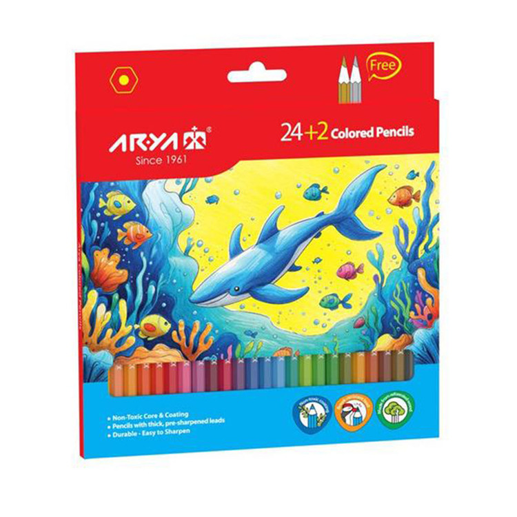 - رنگهای موجود در بستهبندی: 26 رنگ (2 + 24) - با رنگهای درخشان - دارای نوک محکم و مقاوم در برابر شکستن - با قابلیت تراش آسان - غیرسمی - مناسب برای افراد بالای سه سال - ابعاد بستهبندی: 1 × 19.5 × 22 سانتیمتر - وزن بستهبندی: 162 گرم