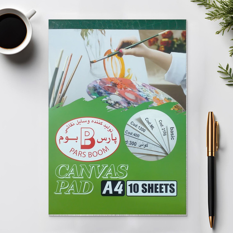 پارچه 210 گرم - مناسب برای تمرین هنرجویان - جلد پشتی از ام دی اف 3 میل - قابل استفاده به عنوان تخته شاسی - 10 برگ - سایز A4 - قابل استفده برای رنگ روغن ، اکریلیک و آبرنگ