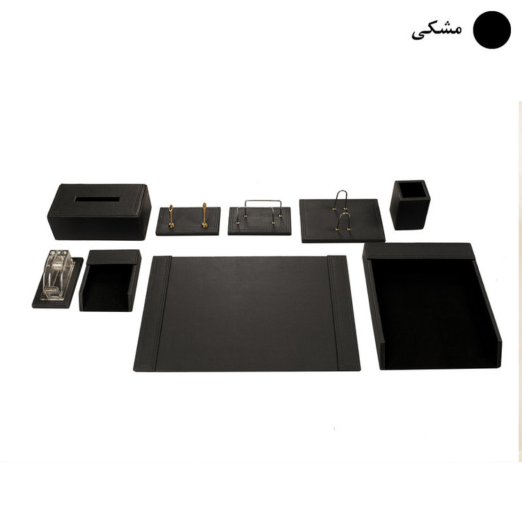 اقلام موجود در ست: کازیه , جاقلمی (استند خودکار) , جای کاغذ یادداشت , پایه چسب , جامدادی رومیزی , جای نامه