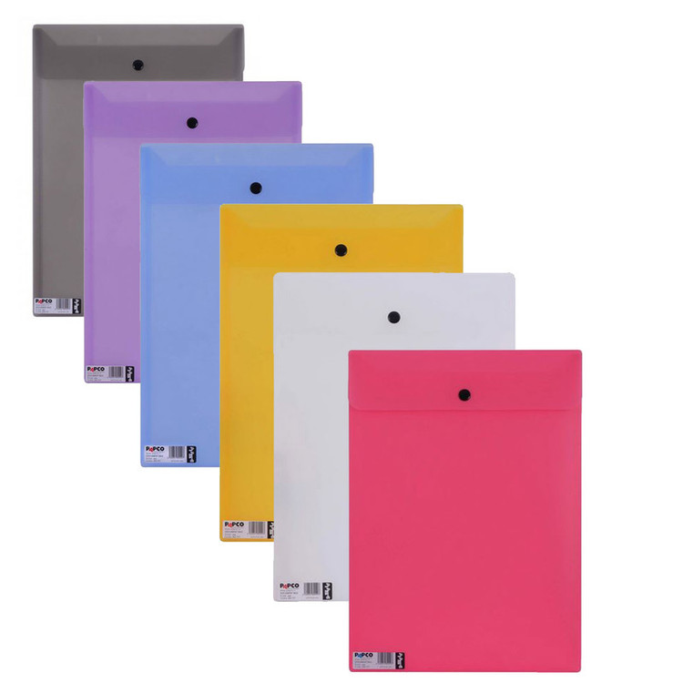 مجموعه شامل 6 عدد پوشه دکمه دار پاپکو از مدل ارکید در سایز A4 می باشد .