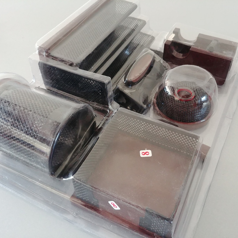 اقلام موجود در ست: جای کاغذ یادداشت , پایه چسب , جامدادی رومیزی , جای نامه , جای گیره , پانچ