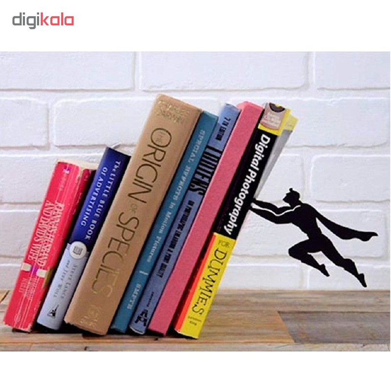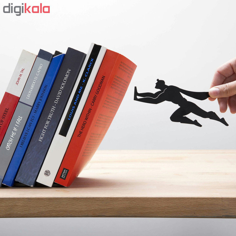 این محصول خلاقانه و ساخت داخل از جنس فلز بوده و دارای رنگ کوره ای می باشد، علاوه بر نگه داشتن کتابهای شما، جلوه زیبایی نیز به محل کار یا منزل شما می دهد. با این نگهدارنده ابتدا به کتابهاتون نظم میدید و دوم اینکه یه طرح خلاقانه به دکوراسیون منزل یا محل کارتون اضافه میکنید. در این نگهدارنده با مخفی شدن پایه نگهدارنده توسط جلد کتاب و اتصال آدمک قهرمان به وسیله یک آهنربای قوی ،اینطور به نظر میرسد که کتاب ها درحال سقوط هستند اما توسط یک قهرمان داستانی در هوا نگه داشته شده اند! بدنه اصلی و آدمک همگی از جنس فلز و رنگ کوره ای پودری الکترواستاتیک ضد زنگ. محدودیتی در نگه داشتن تعداد کتاب و دفتر و مجله ندارد. قابل استفاده در هر دوطرف جلو و پشت می باشد. مقاومت فلز و وزن مناسب سبب عمر نامحدود این قطعه شده است. براحتی قابل جابه جا شدن است.