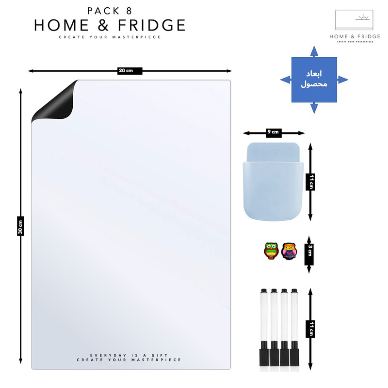 اقلام همراه: 4 عدد ماژیک وایت برد ، ۲ عدد مگنت یخچال ، ۱ عدد هولدر یخچال