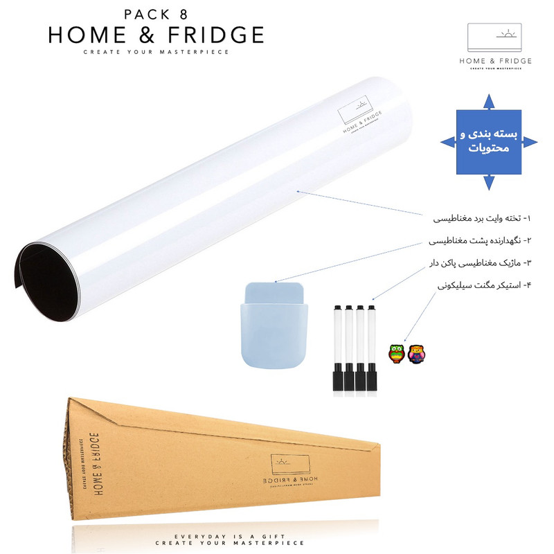 4 عدد ماژیک وایت برد ، ۲ عدد مگنت یخچال ، ۱ عدد هولدر یخچال