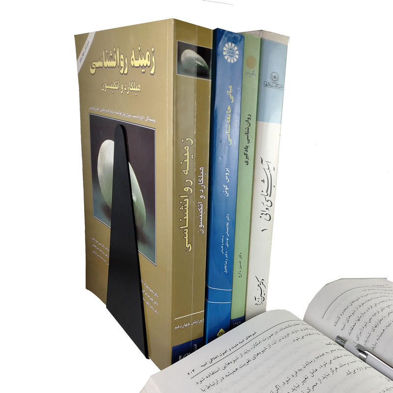 نگهدارنده کتاب از جنس فلز، با رنگ کوره ای الکترواستاتیک با کیفیت پوشش دهی شده است. قابلیت نگهداری تعداد نامحدود کتاب، مجله، کاتالوگ و ... را دارد. دوطرفه بوده و به دو حالت قابل استفاده است. ساخت ایران